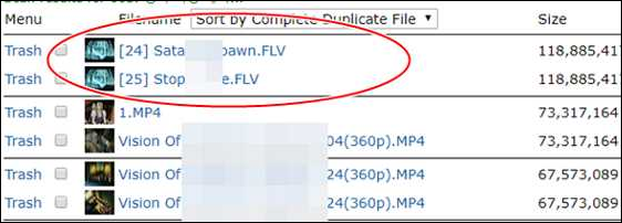 ▼ 검사가 끝난 후 중복된 파일 있으면 다음과 같이 보여줍니다. 기본적으로 CRC32 Checksum 중복 체크, 동일한 Size 체크. 파일명 체크 등은 되는 듯 싶습니다. 파일명 다른 것도 당연히 찾습니다.