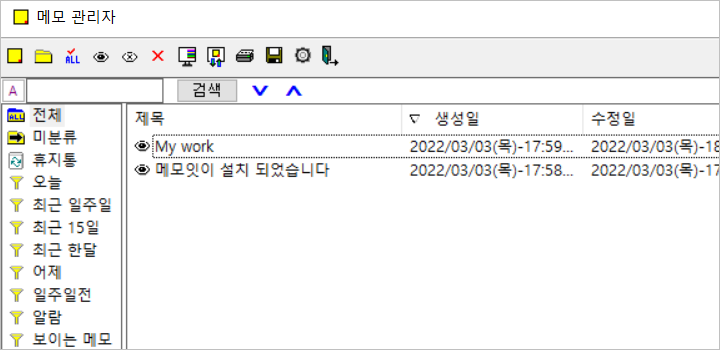 내가 작성한 메모는 메모 관리자를 통해 모아서 관리할 수 있는데, 바탕화면에 포스티잇 형태로 흩어져 있는 메모를 한 화면에 모아서 한눈에 관리가 가능합니다.